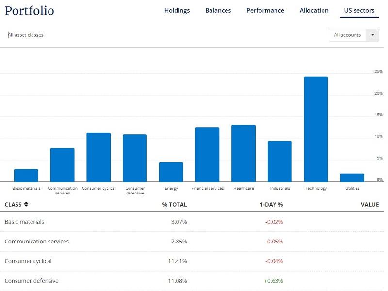 It breaks down your investments based on the sector: