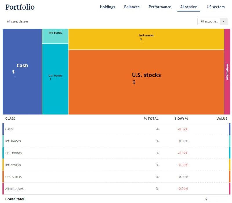 The Balances and Performance tabs are less interesting than the Allocation tab.