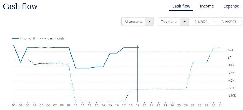 This data calculates your monthly cash flow to see if your actual spending aligns with your projected spending month-to-date. It’s also easy to spot spending trends, although it doesn’t break them down into expense types like You Need A Budget (YNAB), which is a better fit for making an in-depth spending plan.