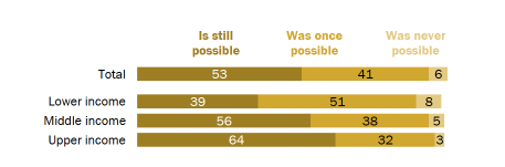 Meanwhile, 64% of upper-income earners believe it is currently possible. (The actual income amounts were not defined.)