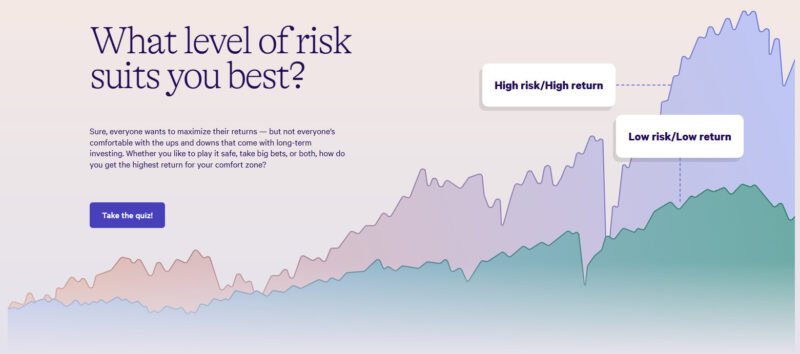 It’s pretty simple. It takes a few seconds to through the questionnaire and get your recommended investment plan: (you can do this yourself without putting any personal information, they don’t ask for or require an email to play with this tool)